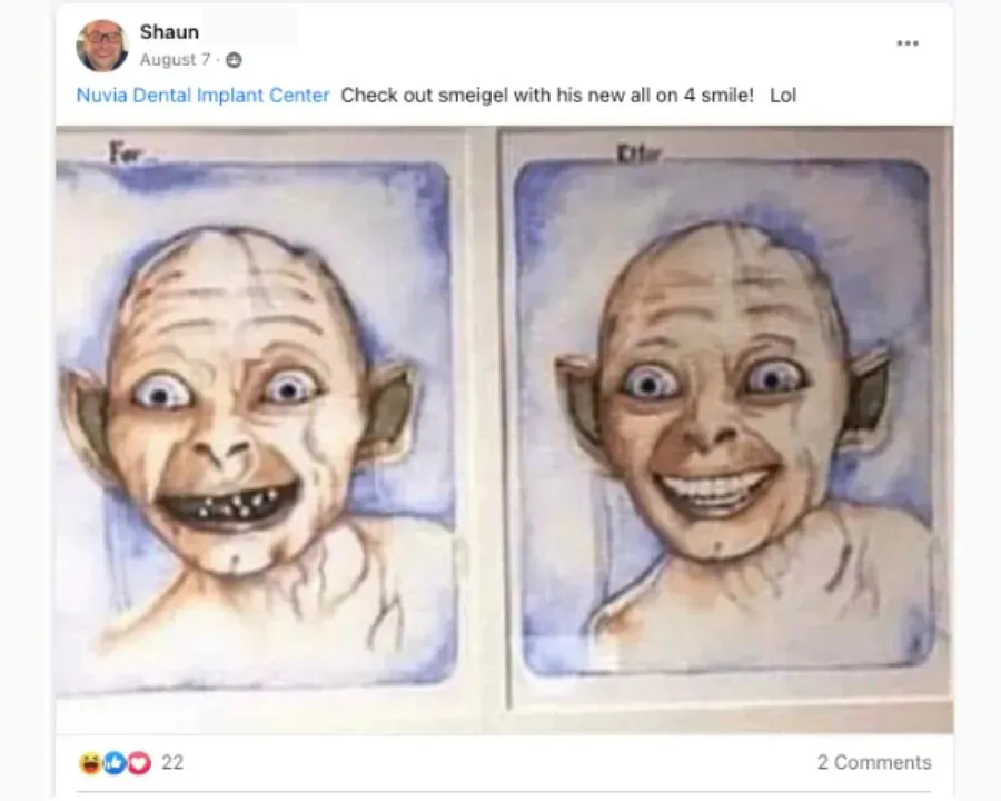 He's also a Lord Of The Rings Fan and shared his image of smeigel getting his new set of teeth as well LOL.