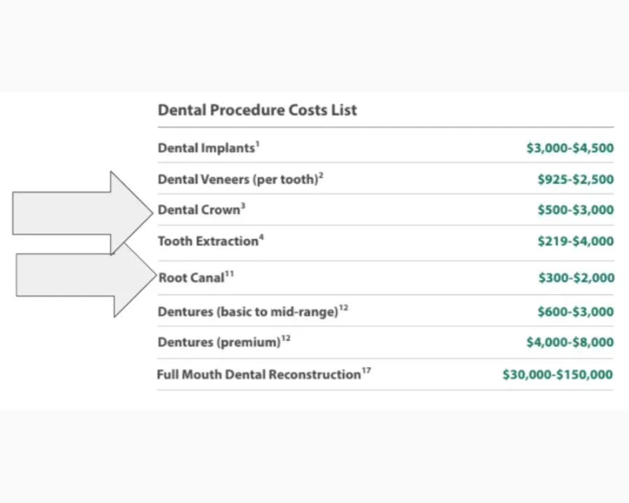 And really the average costs of just a root canal and crown combined is about $2,500.